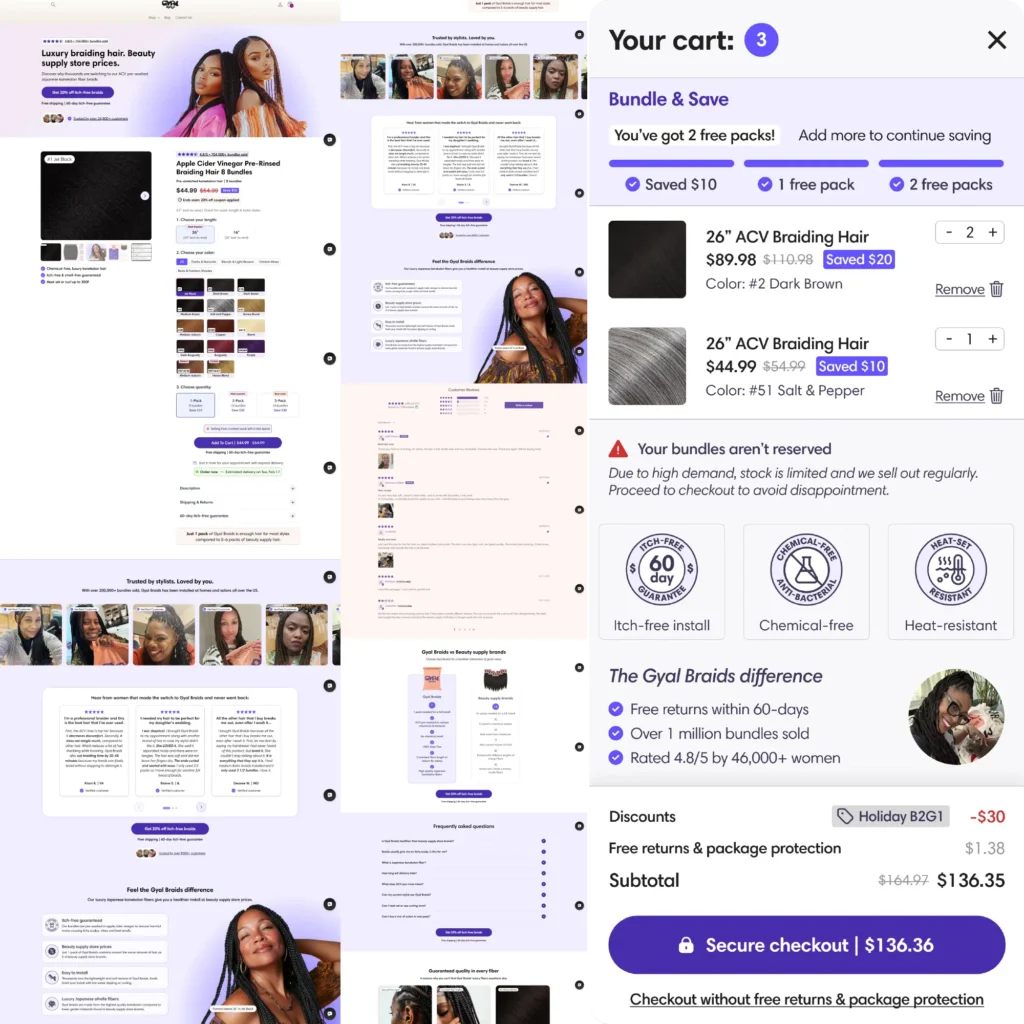 I developed this high-converting Figma-to-Liquid funnel featuring Popup Modal product selection to keep users on-page. It includes a custom Auto-Gift Logic that injects a mystery reward once three items are added, maximizing AOV and conversion rates.